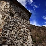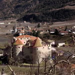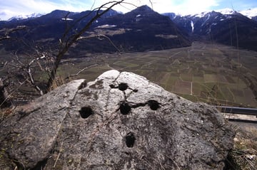 Aber es gibt sie auch in Südtirol! Ausgerechnet beim Aufgang zur Burg von Reinhold Messner konnte ich drei Schalensteine finden, die etwa die Form und Größe unserer Schalensteine hatten. Es waren drei Schalensteine, die nebeneinander angebracht waren.