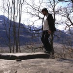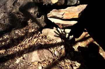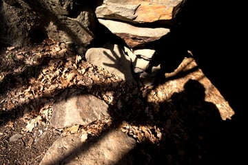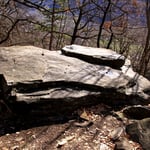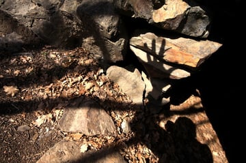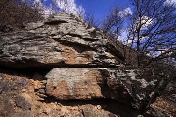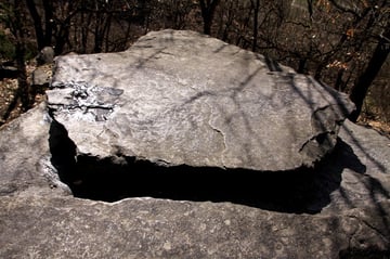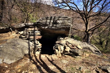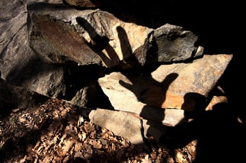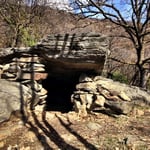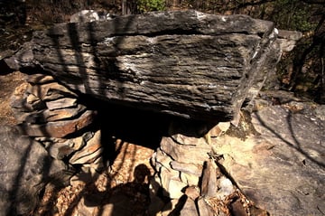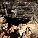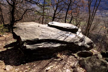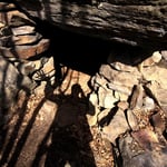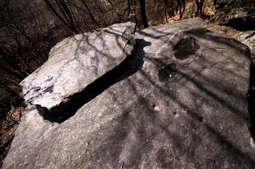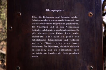 Mein Ziel war zunächst nur die Klumperplatte, die mich stark faszinierte. Über einer Höhle, lag eine große Felsenplatte. Auf dieser Felsenplatte, lag wiederum eine zweite, kleinere. Auf dieser kleinen Felsplatte waren Näpfchen zu sehen und man konnte auf der ihr schaukeln. Beim Schaukeln wurde ein lauter Ton (Klumpern) erzeugt, der auf der anderen Seite des Tales noch laut zu hören ist.