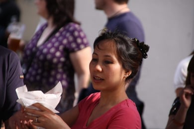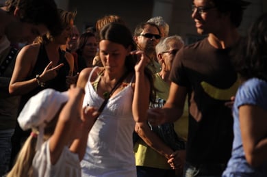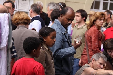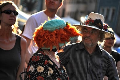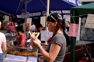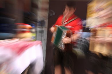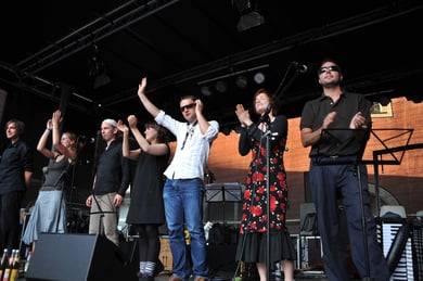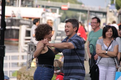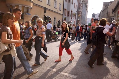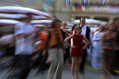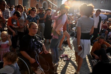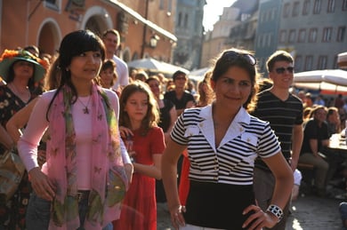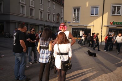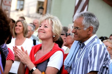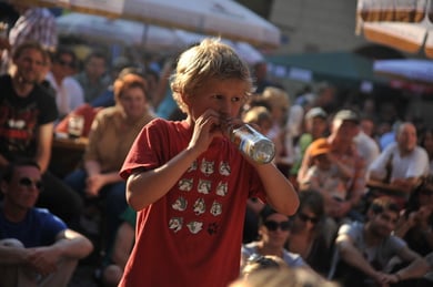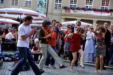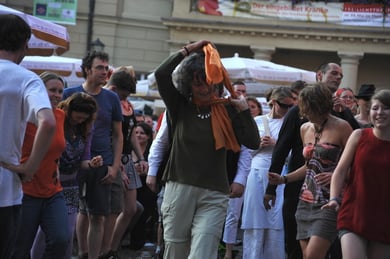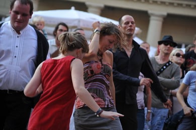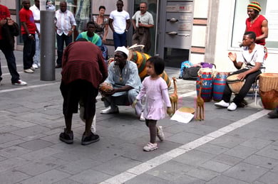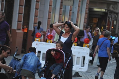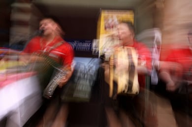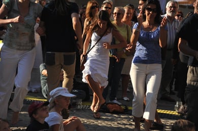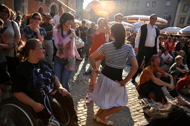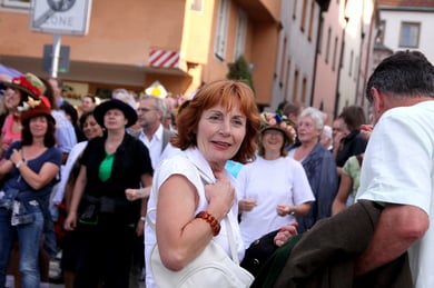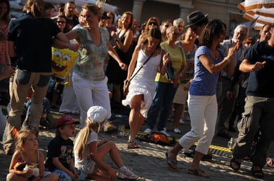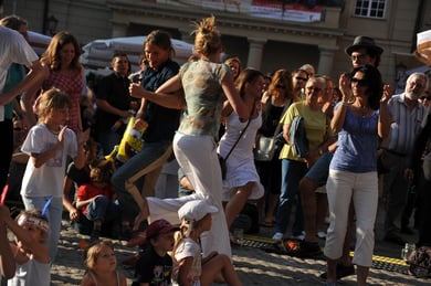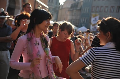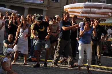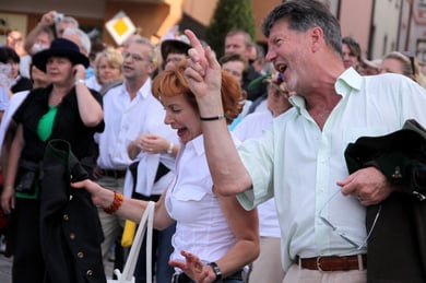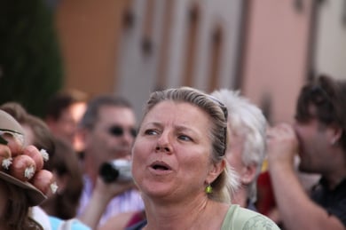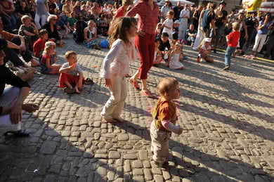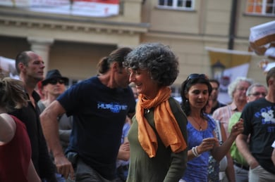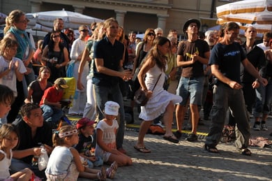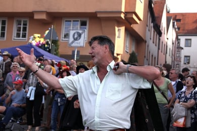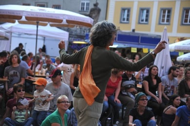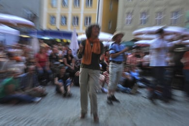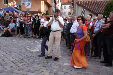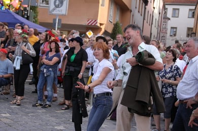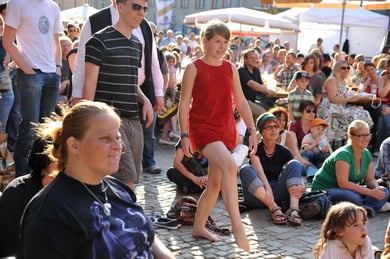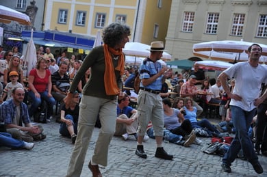 Am späten Sonntagnachmittag, also am 28. Juni fuhr ich noch einmal nach Regensburg zum Bürgerfest und blieb bei der Musikgruppe "Lawaschkiri" hängen. Die Gruppe verstand es ausgezeichnet, die Zuschauer mitzureissen, so dass immer mehr zu tanzen begannen und so vom Zuschauer zu Mitwirkenden wurden. Zunächst tanzten einige Frauen, dann auch Männer und Kinder. Ich beschloss für diesen Nachmittag am Haidplatz zu bleiben und versuchte, die heitere Stimmung fotographisch festzuhalten und durfte so einige Stunden Regensburg von der schönsten Seite erleben.